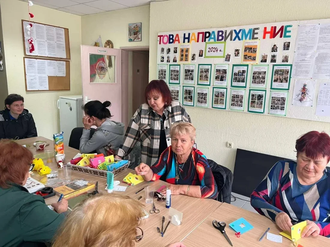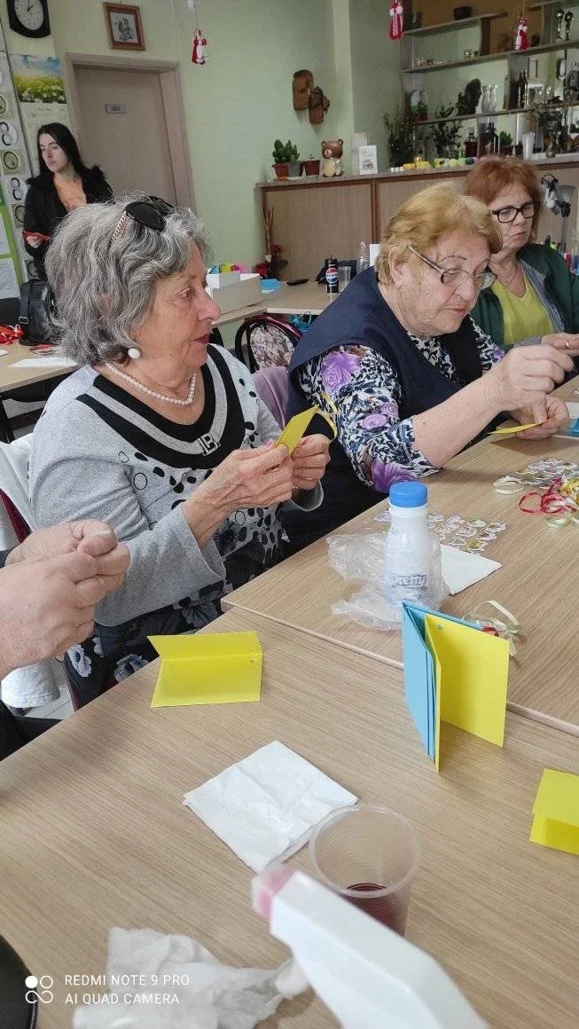 Благовещение - един от най-светлите християнски празници! Посрещнахме всички с питка намазана с мед за здраве. Последва беседа ,на която всички се запознаха с българските традиции и обичаи, които трябва да спазваме на този празник. Всички потребители вложиха старание и творчество при изработването на сто картички "с кауза". Собственоръчно написаха пожеланията си за здраве във връзка с предстоящия Великден!